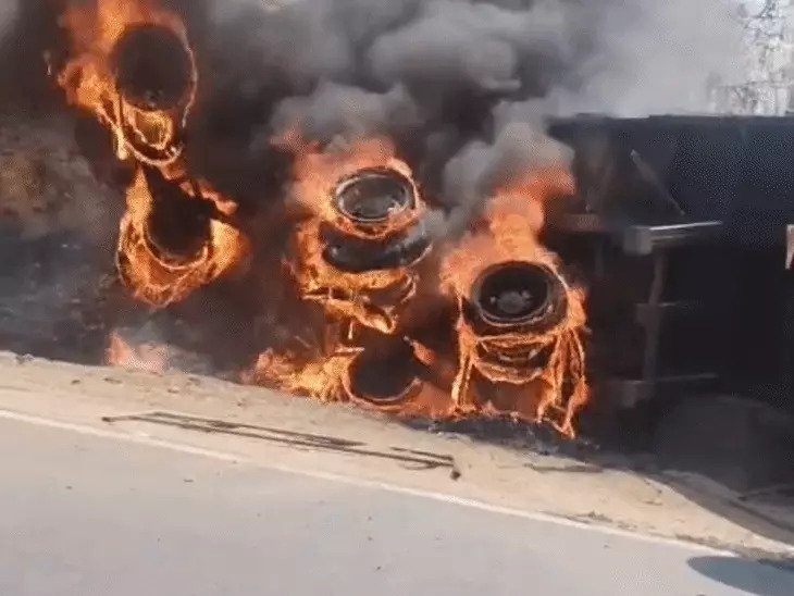 इंजन और टायर जलकर खाक