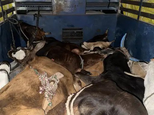 रस्सियों से बांधकर क्रूरतापूर्वक ले जाए जा रहे थे गोवंश