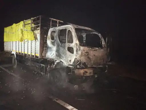जानकारी के अनुसार ट्रक क्रमांक MH 40 CT 6154 लहसुन की खेप लेकर उड़ीसा जा रहा था। खंबारा घाट के पास पहुंचते ही ट्रक के केबिन से अचानक धुआं उठता दिखाई दिया, जिसके कुछ ही पलों में आग की लपटें निकलने लगीं। स्थिति को भांपते हुए चालक ने तुरंत ट्रक से छलांग लगा दी, जिससे उसकी जान बच गई। चालक को मामूली चोटें आई हैं और वह सुरक्षित बताया जा रहा है।